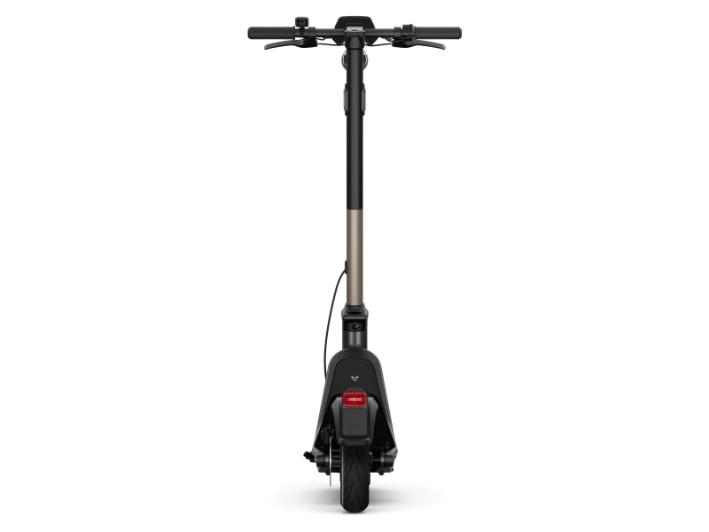 Its built-in iconic LED halo daytime running light, brake light, and bell ensure that the kickscooter is highly visible and audible to other road users while on the move.