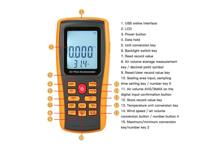 9. Air velocity units:ms,Ftmin,Knots,Kmhr,Mph