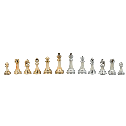 Dal Rossi Italy Chess Set with Shiny Mahogany Chess Box 18” with drawers and Modern Staunton Style Gold and Silver Chess Pieces