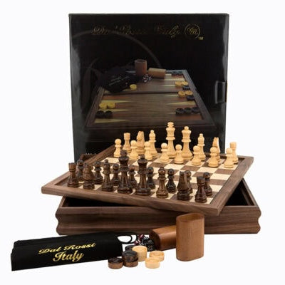 Dal Rossi Chess Checkers Backgammon walnut flip top board 14″