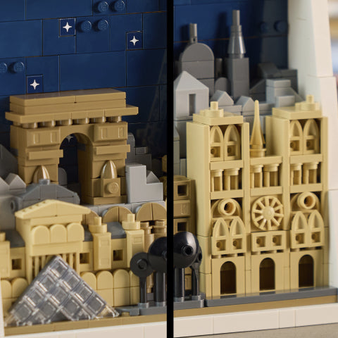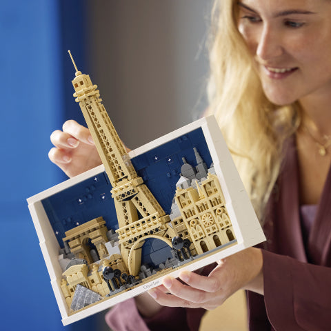 Indulge your love for Paris with this collectable home decor set. Create the starry sky and city skyline silhouette to set the stage. Build the Arc de Triomphe, Notre-Dame de Paris Cathedral, the Louvre and the Eiffel Tower, which extends beyond the frame’s limits. Add in finishing details to complete the skyline, the decorated ‘City of Love’ brick and minimalist frame, and it’s ready for display.