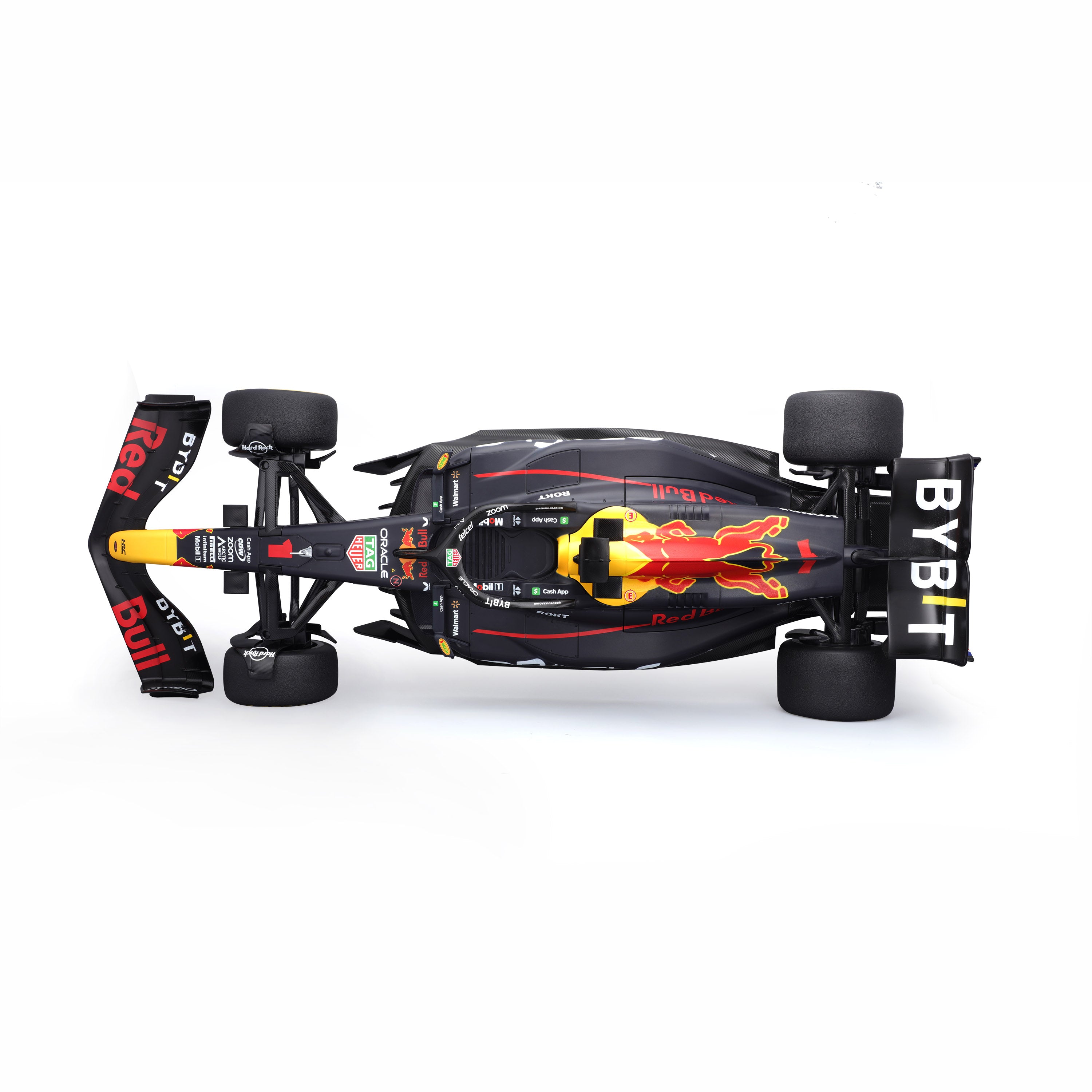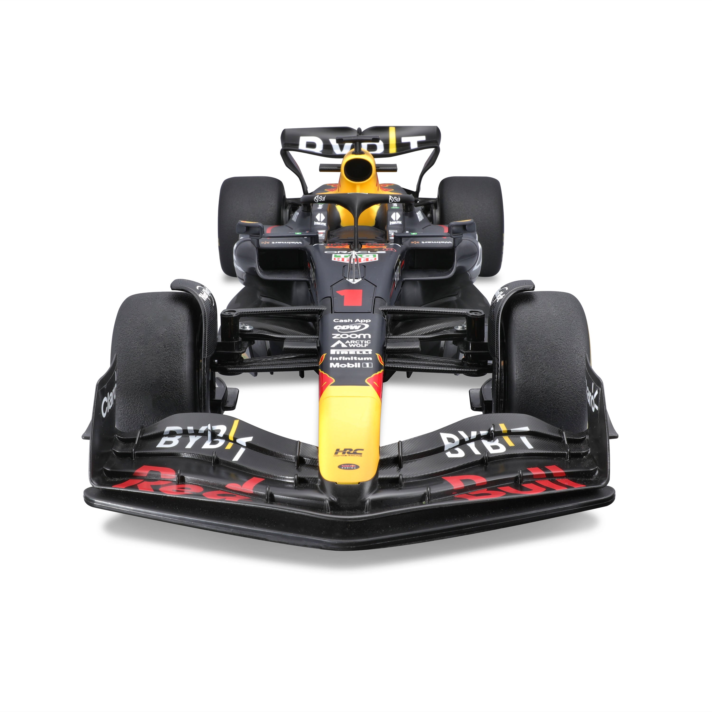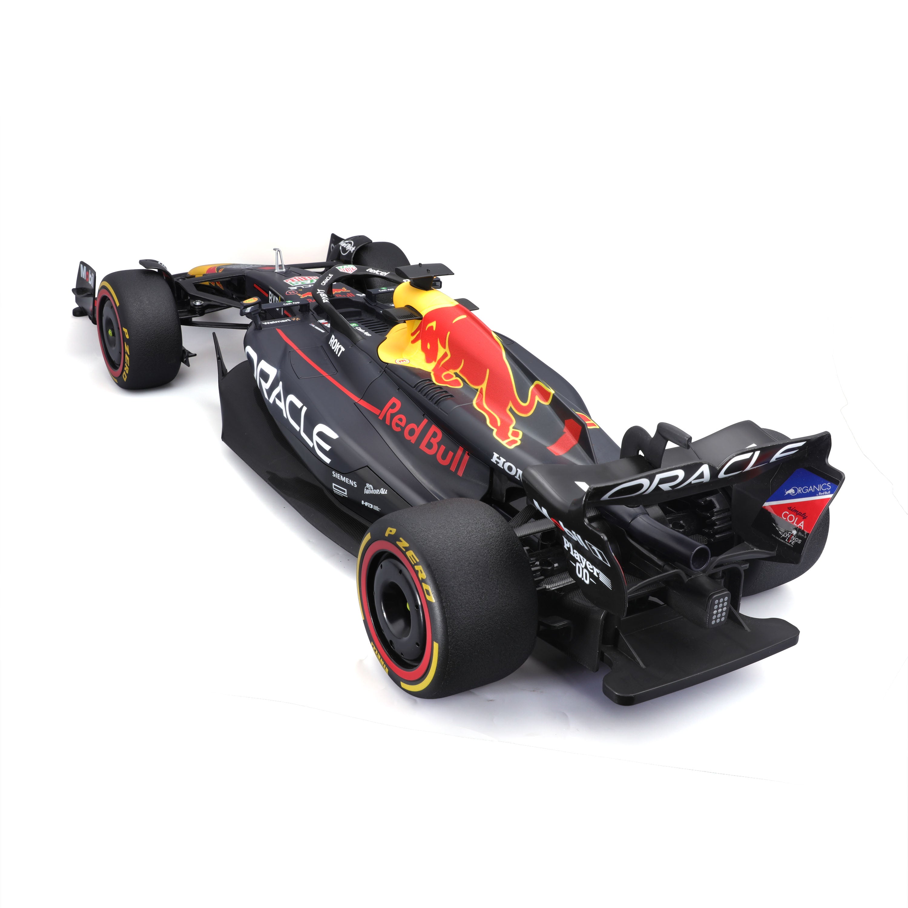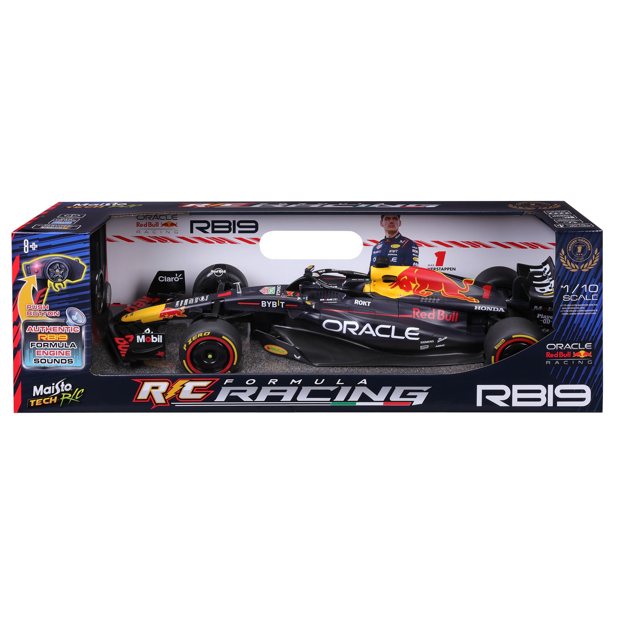 The 1:10 scale R/C Oracle Red Bull Racing RB19 is a precision-crafted replica, capturing the sleek aerodynamic design and bold livery of the Red Bull Racing 2023 formula contender. Built for speed and agility, it offers enthusiasts an immersive racing experience that includes authentic RB19 engine sounds.