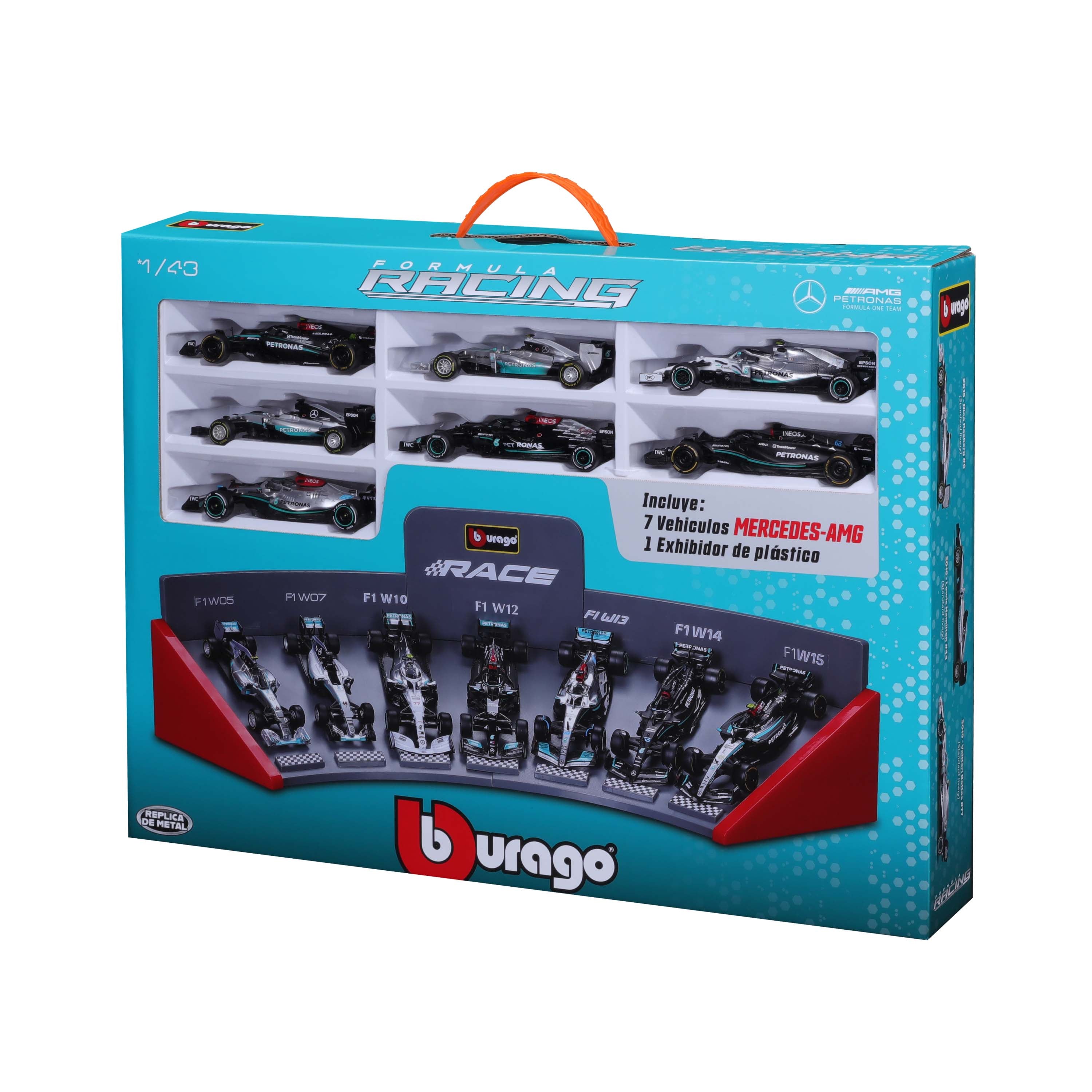 Showcase your passion for racing with the 1:43 F1 Mercedes AMG Deluxe Gift Set, complete with a sleek display stand. This detailed set is a fantastic display piece for fans and collectors who love the thrill of Formula 1.