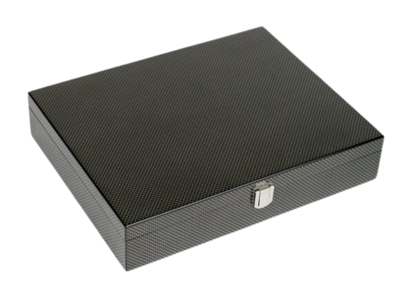 The carbon fibre finish case not only adds a touch of modern flair but also ensures durability and protection for the precious Mahjong tiles within. The sleek and compact design makes it easy to carry and store, allowing you to indulge in the game of Mahjong wherever you go.
